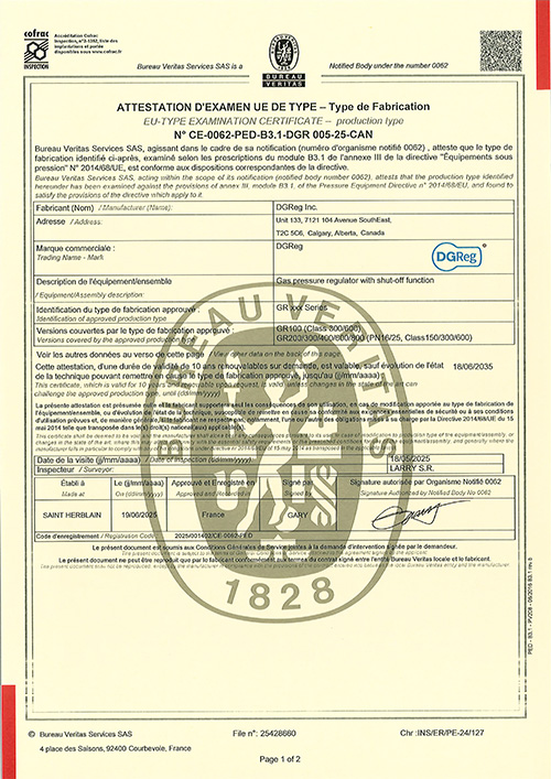 DGReg products conform to global performance and safety standards including EN 334 and EN 14382 with ISO 9001, CE-PED and CRN certifications. Each regulator is engineered through systematic design to ensure stable control and reliable operation. Rigorous quality inspection processes—including flow simulations, pressure testing, and real-working trials—guarantee compliance with stringent requirements.